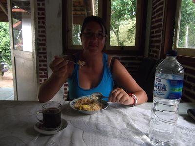 | Avant de repartir du parc et d attaquer nos 4 heures de marche pour retrouver la civilisation, on s est fait un petit dej typique : Cafe et Riz!! Et oui la on avait pas trop le choix du menu. J'en peu plus du riz!!!!!! |