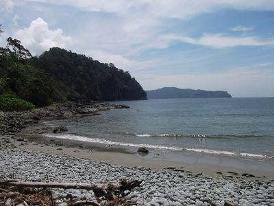 | Une autre plage de reve (mais de galets) qui faisait partie du parc national. On a fait une belle pause dans notre rando pour profiter de cette beaute! |