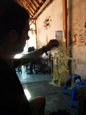 | Jogja est aussi connu pour ces spectacles de marionnettes. Ces marionnettes sont fabriquees a la main dans du cuir de buffle. La fabrication est impressionnante a voir. |