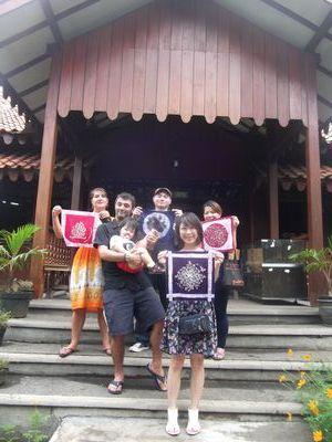 | Le Batik c'est LE truc du coin. C'est un procede d impression de tissu avec de la cire. Le principe est de faire le dessin a la cire puis de colore le tissu et de retirer la cire. On a donc ete visite le muse du batik et on s'est initie a cet art.