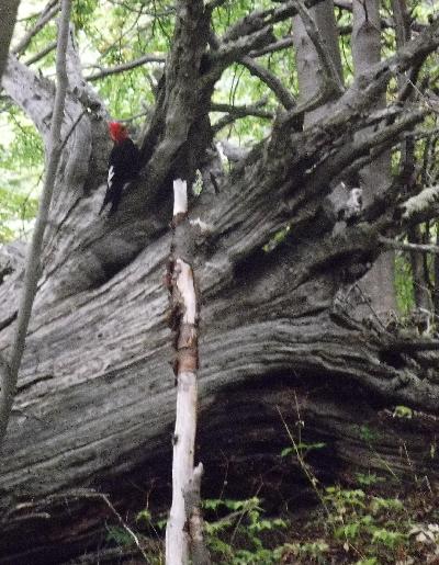 | On a croise des piverts noirs a tete rouge. C est incroyable le bruit qu ils font en attaquant le bois avec leur bec! |