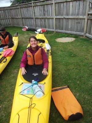 | On est reste un peu au Nord de l ile Sud pour faire un peu de kayak de mer. On a voulu retenter l experience pour voir si les kayaks neozelandais coulaient aussi. On n a meme pas chavire une seule fois, des vrais pros avec du materiel de pro : je m adresse aux specialistes : jupe et pedales au pied pour tourner.