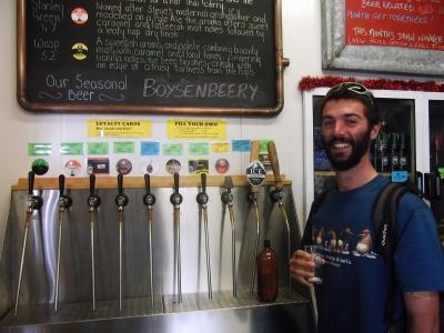 | La ville en elle meme n a rien d exceptionnelle. L interet principal est la microbrasserie que nous avons visite. On s est pris un peu de bieres pour feter l anniversaire du "grand" cousin Sebastien (34 ans) et de Oncle Bernard. La veille, apres le treck, on avait aussi trinque pour toi Magda, quelle idee de tous naitre en meme temps.