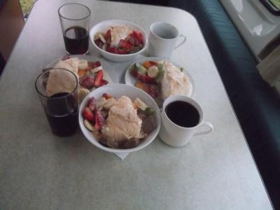 | On a fait les choses bien en finissant avec le dessert traditionnel neozelandais : le panalova. Une sorte de merengue molle tres bonne avec des fruits et de la creme |