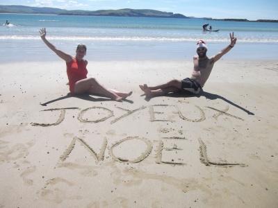 | On a ensuite ete passer Noel sur la plage! Premiere fois que l on faisait trempete un 25 Decembre. ca change de la neige et du feu de bois |