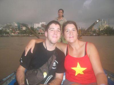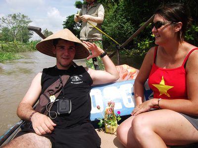 | Apres un petit week end a Ho Chi Minh, nous sommes partis direction le delta du Mekong. Leves a 5h du mat pour admirer le leve de soleil depuis notre petite barque a moteur. Une guide nous faisait faire le tour de deux marches flottants et des canaux du Mekong. |