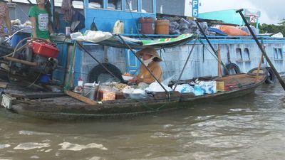| Le marche flottant, c'est comme un marche Vietnamien normal mais sur l'eau. Tot le matin on voit donc des petites barques deambuler sur l'eau a la recherche de fruits, de legumes et meme de volailles. |