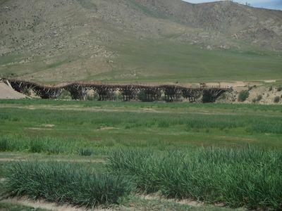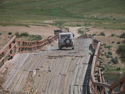 On reprend la route (ou plutot la piste) direction le nord de la Mongolie. Ici les routes c est pas ca mais les ponts c est pire!