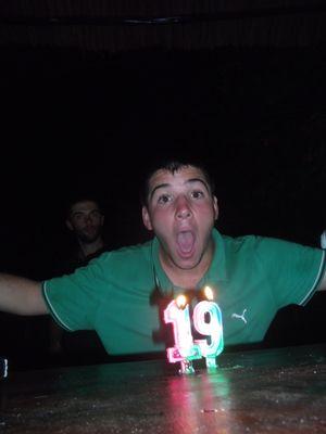 | On a tout de meme reussi a trouve un petit bar pour feter les 19 ans du petit. Les serveurs nous ont deniche une petite patisserie pour avoir un gateau et que Baptiste puisse souffler ses bougies, sans quoi il nous aurait fait une petite crise. |
