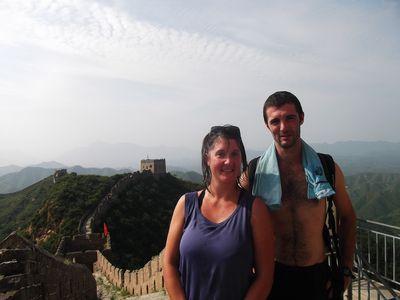 | Voila on est arrives en haut! Non il n y a pas de piscine au sommet on est trempes parcequ il faisait tres chaud et on a bien souffert em montant! Mais arrives en haut, c est magnifique. La muraille longe les cretes des montagnes. Le spectacle est inoubliable. |