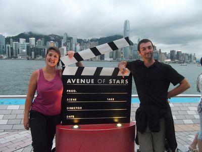 | C est comme l avenue aux Etats Unis a part que la c est des empreintes de stars de cinema asiatiques. On a reconnu Jackie Chann et Bruce Lee |