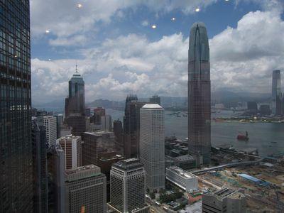 | On est monte au 43eme etage de la tour de la Banque de Chine. On avait un beau panaroma de la (meme si on etait que a la moitie de la tour). |