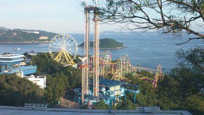 | Pour le 15 Aout, pendant que certains se mangeaient une entrecote a 9h le matin, nous sommes partis faire le parc d attraction de Ocean Park. Je tanais Vincent depuis plusieurs jours pour aller a Disney Land a Hong Kong mais quand on a vu qu il etait petit et beaucoup moins bien que celui de Paris, on s est decide pour l autre parc qui est plus un parc a sensations construit a cote de la mer. |