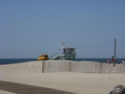 | Les cabines des "vrais" sauveteurs (desolee Vincent) ressemble par contre bien a celles de 'Alerte a Malibu' avec la bouee accrochee au coin, le drapeau americain et la jeep. |