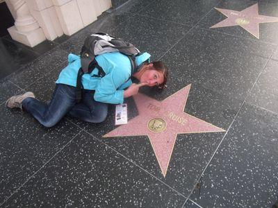 | On a quand meme pu remonter Hollywood boulevard a la recherche d' etoiles de star connues. Me voici en compagnie de Tom Cruise. enfin, ... de son etoile |