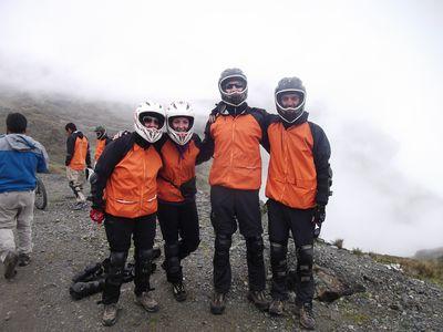 | Et nous voila equipes pour notre grande descente! Et oui que de la descente, on allait quand meme pas se faire une ascension a 4600m d altitude! On a la classe non? Des vrais pros! |