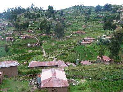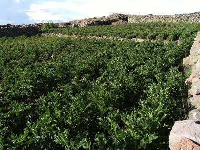 | Et qu est ce qu on mange? Des patates, des patates partout. Chaque proprietaire a son petit bout de terrain bien delimite par des murs de pierre. |