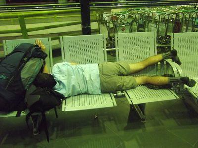 D'ailleurs commes vous pouvez le voir on a tres bien dormi! Surtout Vincent qui etait colle a son banc! |