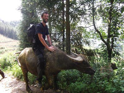| Et oui un nouveau moyen de locomotion! Vincent nous a fait le plaisir de monter sur un buffle comme le fond les locaux. |