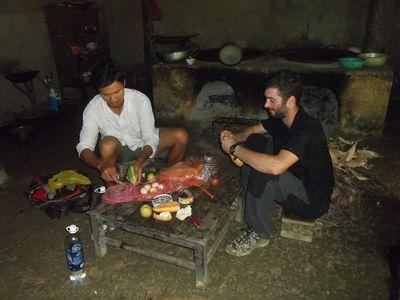 | On a pic-niquer dans une maison Hmong. Leur maison est tres sommaire. Les murs sont en bois et le sol est en terre battue. Il y a une grande cuisine avec un fourneau a bois et de grandes bassines dans lesquelles ils fabriquent l'alcool de mais. |