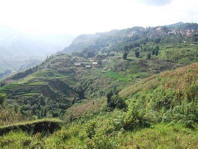 | Une petite photo des rizieres en plateaux. Le riz est presque bon pour la recolte. Du coup on a eu la chance de voir des champs avec les plans de riz assez hauts et tres verts. Le systeme d irrigation d'etages en etages est tres au point. |