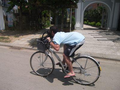 | A notre grand regret en arrivant a Hue, on s'est rendu compte que cette ville n etait pas tout a fait pres de la cote et qu'il n'y avait pas de plage. Hue est une ville fortifiee chargee d'histoire mais qui malheureusement a beaucoup souffert de la guerre. On a donc loue des velos et parcourus la ville de monuments en monuments, de temples en citadelle ...Quelle journee sportive! |