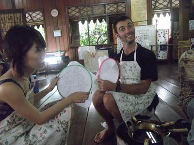 | Le Batik c'est LE truc du coin. C'est un procede d impression de tissu avec de la cire. Le principe est de faire le dessin a la cire puis de colore le tissu et de retirer la cire. On a donc ete visite le muse du batik et on s'est initie a cet art.