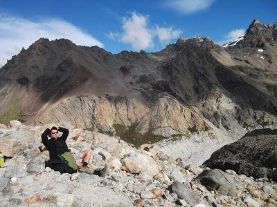 Vous pouvez apercevoir le glacier derriere nous et comme vous pouvez le voir a mes cheveux il y avait du vent! |