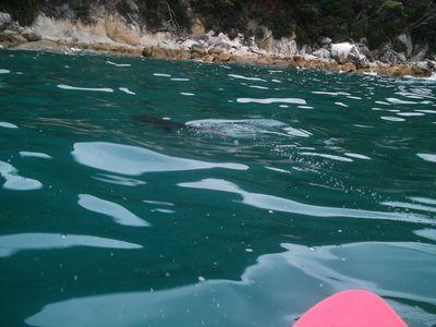 | Qui dit kayak de mer, dit quelques petites vagues mais aussi des animaux qu on a pas l habitude de croiser sur la Dronne. Un lion de mer nous a accompagnes quelques instants, il nous a bien surpris en prenant sa respiration tout a cote du kayak. |