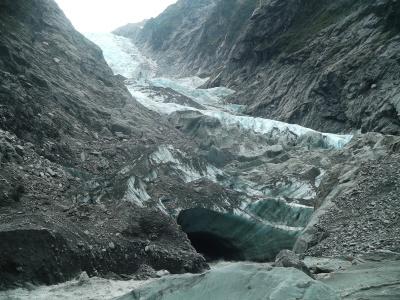 ca fait un petit moment que l on ne vous a pas raconte nos aventures Neo Zelandaise. Alors reprenons on nous en etions. Apres avoir quitter Reefton, on a longe la cote Ouest de l'ile sud. On s'est arrete a Franz Joseph, en endroit repute pour ces glaciers. apres avoir ete bloque une journee sous une pluie diluvienne on a donc ete voir les glaciers. On a pas pu marcher sur la glace car c'est payant mais le bleu du glacier est tres joli et c'est bizarre de voir de la glace et de la neige en plein ete. |