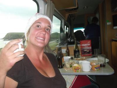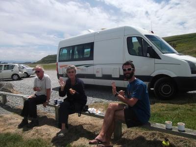 | Petit apero de Noel dans les Catlins, pointe Sud de Nouvelle Zelande.