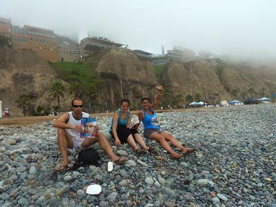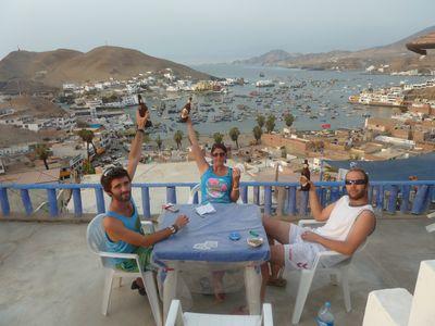 | Notre but etait de profiter de la plage et de faire un peula fete. Mais a Pucusana les seules plages qu ils y avaient etaient bondees et pas tres jolies et nous n avons meme pas trouvé un petit bar. Au programme donc, belotte et detente! |