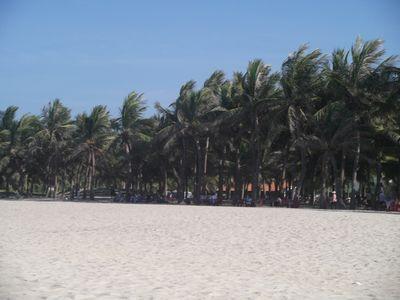 | La plage est deserte tout l'apres midi. Les Vietnamiens envahissent la plage avant le coucher du soleil vers 17h, ils se baignent tout habilles (le bikini ici c'est seulement pour les touristes) et ils dansent et mangent sur la plage. |