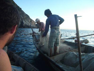 | Les pecheurs partent de 4h a 6h sur des petites barques a moteurs. Ils pechent au filet. C etait tres joli et tres interessant de participer a la vie du village. ca valait le coup de se lever a 5h! |