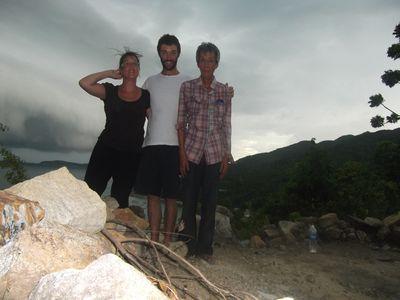 | Sur le chemin vers le sud, nous avons rencontre "Kai" un vietnamien qui habite dans le village sud de l'ile. Il nous a propose de venir dans son village ou on pourrait se baigner, faire du snorkeling (masque et tuba), pecher ... ca avait l'air bien tentant alors on l'a suivi jusqu a son village.