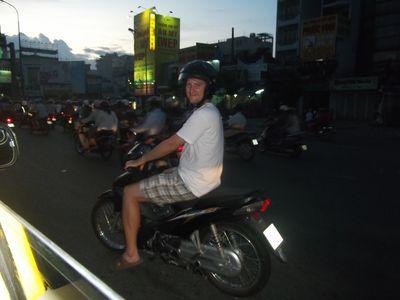 | Une petite photo de Pepe sur sa motorbike : il s'est tres bien adapte a la conduite folle des vietnamiens sur leurs deux roues! |
