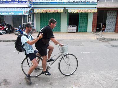 | Apres Can Tho, nous sommes remontes le long du Mekong pour arriver a "Chau Doc". La bas on a loue des velos pour monter le Mont Sam , une petite montagne depuis laquelle on voit tout le delta du Mekong et meme le Cambodge. |