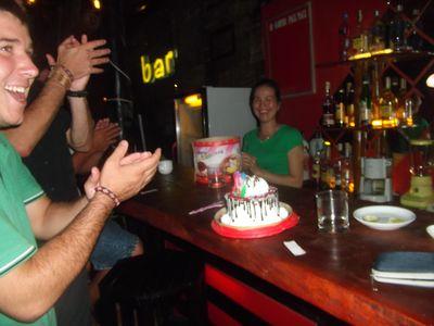 | On a tout de meme reussi a trouve un petit bar pour feter les 19 ans du petit. Les serveurs nous ont deniche une petite patisserie pour avoir un gateau et que Baptiste puisse souffler ses bougies, sans quoi il nous aurait fait une petite crise. |