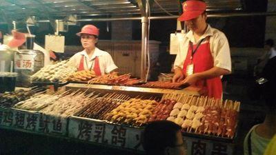 | marche de nuit avec differents stands de bouffe un peu de tout et surtout beaucoup de trucs bizarre j espere qu on n a pas mange de chien