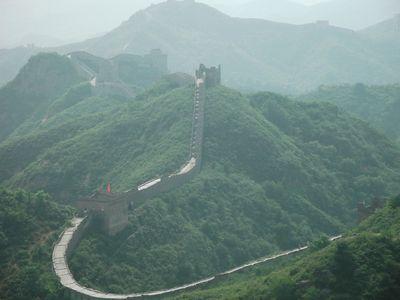 | Comme on a pas choisi la partie la plus touristique, la muraille n'est pas restauree et par endroit ca monte dur et il faut etre prudent. On a marche sur la muraille pendant deux bonnes heures, c'etait genial. |
