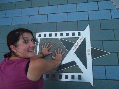 | C est comme l avenue aux Etats Unis a part que la c est des empreintes de stars de cinema asiatiques. On a reconnu Jackie Chann et Bruce Lee |