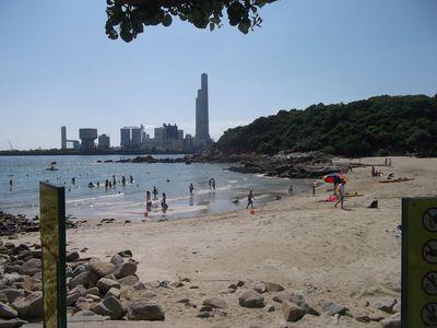 | On pensait pas pouvoir se baigner a Hong Kong, en plus les plages sont magnifiques et la vue imprenable sur la belle usine d a cote. |