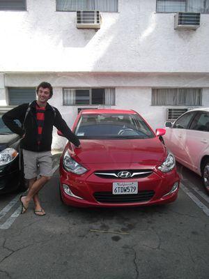 | Le lendemain nous avons loue une voiture pour parcourir la californie. Non, ce n' est pas une ferrari ou une porshe comme il y en a beaucoup ici mais ca nous ira tres bien. |