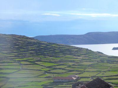 | Et qu est ce qu on mange? Des patates, des patates partout. Chaque proprietaire a son petit bout de terrain bien delimite par des murs de pierre. |