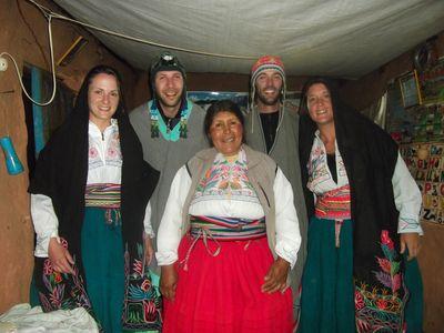 | Josephina, au milieu, est la dame qui nous a accueillie. Elle nous concoctait de tres bons plats. Le soir venu, on s est habille en costumes traditionnels, direction le bal. |