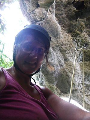| Peut etre un peu moins dangereux que le kayak, Nenette en a profite pour escalader un gros rocher. En tout cas c est un site remarquable pour les amateurs de grimpette. |