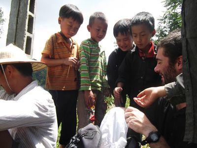 | Le deuxieme jour, nous sommes repartis en direction de Bac Ha. La pluie etait tombee toute la nuit et cela nous a oblige a suivre la route plutot que les petits chemins de montagne qui etaient trop boueux. On s'est arrete dans une famille Hmong qui egrenait du mais on leur a donc donner un petit coup de main. Le grand pere de la famille etait tres connu dans le village car il avait 70 ans et avait fait la guerre contre les americains. Il nous a acceulli a sa table et nous a offert quelques verres d'alcool de mais. La encore ca ne se refuse pas, meme si il est 9h du matin et que son alcool doit frise les 40%! On est repartis tres joyeux de cette maison! |