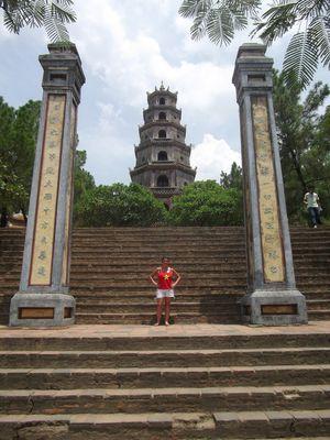 | Et moi devant une "pagode" vietnamiennes (temple vietnamien etant egalement un des symboles du Vietnam). |